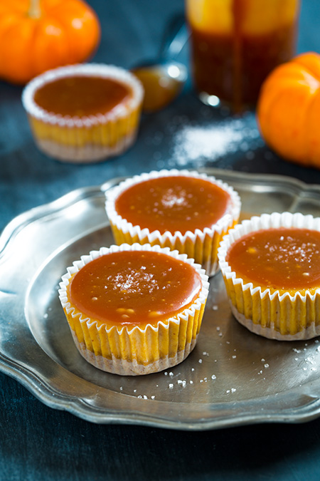 Allow caramel to cool several minutes then pour into a glass jar to cool. Sprinkle lightly with sea salt after spooning caramel over cheesecakes.